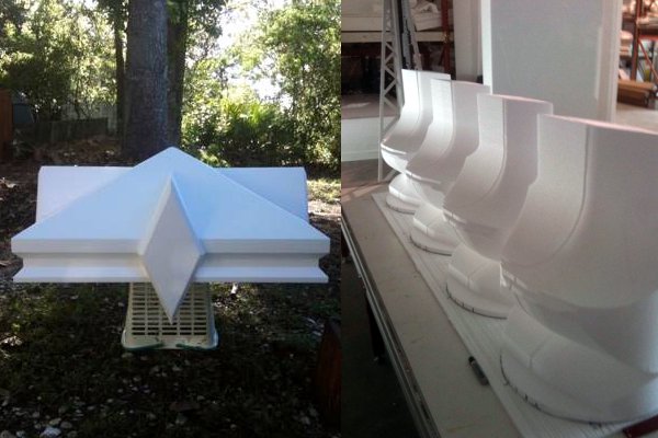 Our custom design foam can be cut and fabricated into molding, architectural accents, columns, caps, brackets, arches, balustrade railings, shutters, louvers, banding and more. We can even produce custom 3D commercial signs, murals, stage props and wedding sets. The possibilities are endless.